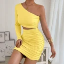 Women Sexy Dress Slanted Single Shoulders Slim Cut Out Hip Hugging Dress Hollow Slim Fit Hip Wrap Long Sleeve Irregular Dress